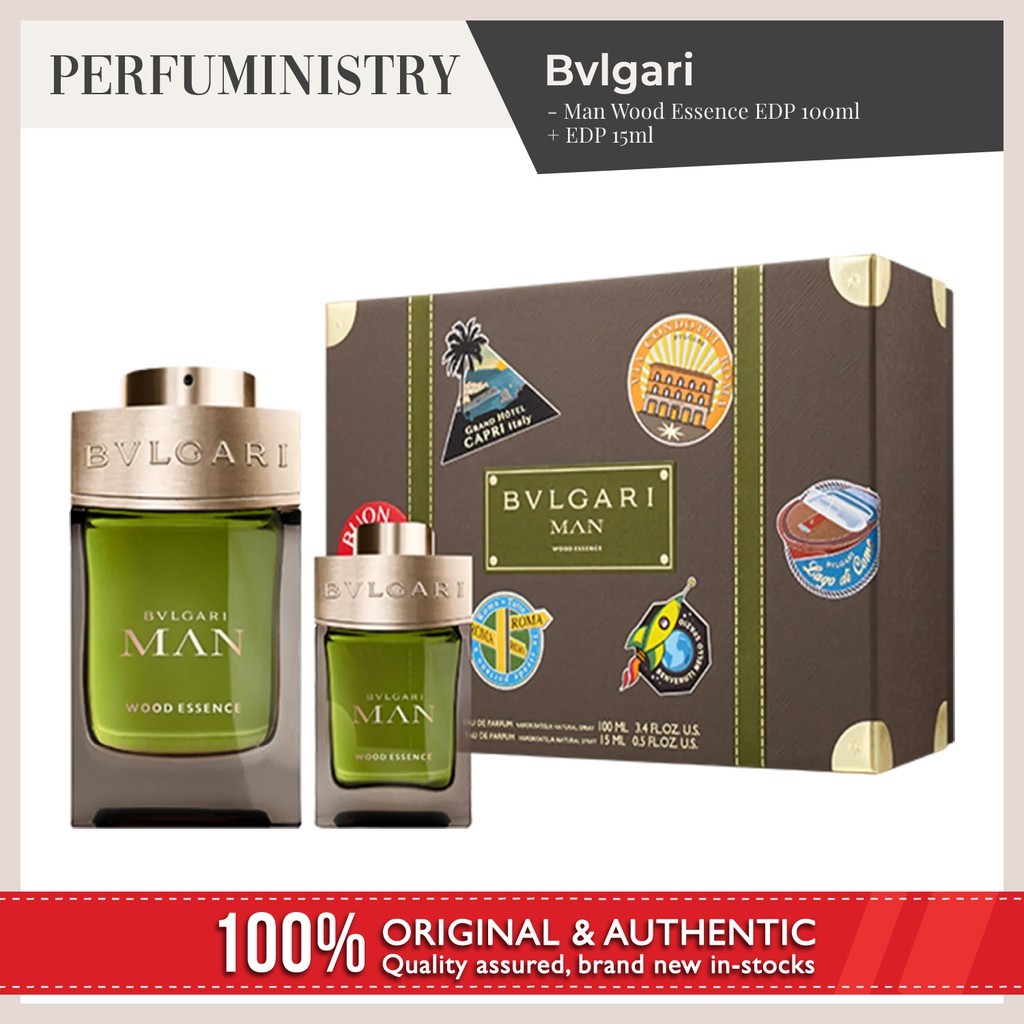 3.4 + 0.5 oz/100 ml + 15 ml olfactive family. By bvlgari (view all) see full size image. Bvlgari man wood essence eau de parfum epitomizes the strong yet vulnerable ties between the city and nature. Bvlgari man wood essence gift set... Bvlgari man wood essence eau de parfum epitomizes the strong yet vulnerable ties between the city and nature.